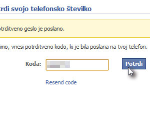 Na vaš mobilni telefon boste prejeli kratko sporočilo s kodo, katero prepišete v polje, ki se vam je prikazalo in kliknete na gumb Potrdi.