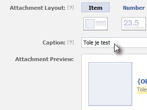 Na novi strani v polje Caption vpišite ponovno nekaj poljubnega.