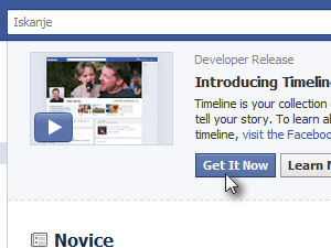 Čez nekaj minut ali pa še prej se vam bo na vrhu pojavilo okno z možnostjo aktiviranja novega Facebook profila, kjer kliknete na gumb Get It Now.