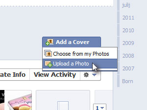 Prva stvar, ki jo lahko naredite je da kliknete na Add Cover in izberete Upload a Photo ter določite neko poljubno fotografijo iz vašega računalnika.
