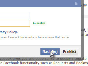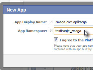 Odpre se novo okno, kjer v polje App Display Name vpište poljubno ime in v polje App Namespace neko drugo brez presledkov, posebnih znakov in šumnikov (glej sliko).