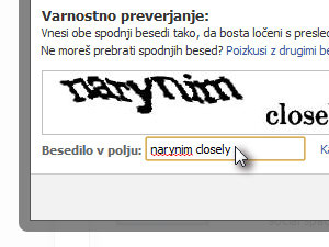 Prikaže se varnostno okno, kjer zgornje malo čudno postavljene besede prepišete ...