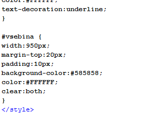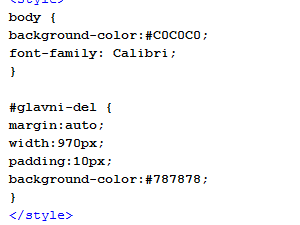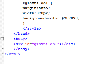 Ta del, ki smo ga ustvarili v znački style, moramo vnesti še v telo kode (body).