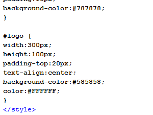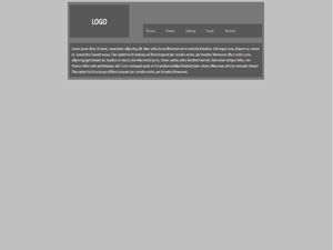 Na podoben način kot glavni del, bomo ustvarili prostor za logotip. Prostoru določimo širino 300px in višino 100px. Tekst bo od vrha dela odmaknjen za 20px ter poravnan na sredino. Ozadje bo nekoliko temnejše sive barve, barva pisave pa bo bela. |