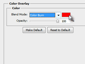 V novem oknu Blend Mode nastavite na Color Burn in nato kliknite na izbirnik barve.