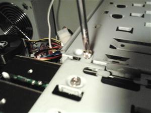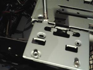 Prejšnji korak ponovite, le da tokrat trdi disk privijačite tudi na drugi strani te škatle.