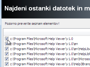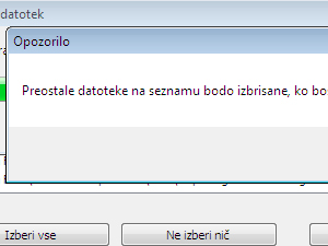 Pozorno jih preglejte ter izberite tiste, ki jih ne potrebujete več, če pa ne rabite ničesar več od tega programa, kliknite kar na gumb Izberi vse. Nato brisanje potrdite s klikom na gumb Izbriši. V opozorilu zopet kliknite na gumb Da, da se brisanje izvede. Datoteke in mape bodo premaknjene v Koš, tako da jih lahko še vedno obnovite, v kolikor ste kaj spregledali. Za dokončno brisanje, morate še izprazniti Koš.
