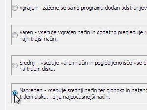 V oknu za odstranjevanje programa je najprej potrebno izbrati način odstranjevanja.