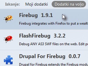 Najprej bomo dodatek Firebug namestili.
