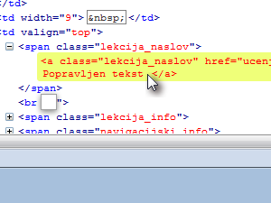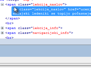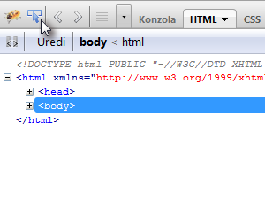Spodaj se nam bo sedaj avtomatsko označil del HTML kode, nad katero se nahaja miškin kazalec.