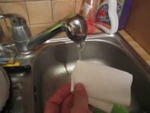 Vzemite kos papirnate brisače in jo čisto malo navlažite z vodo.