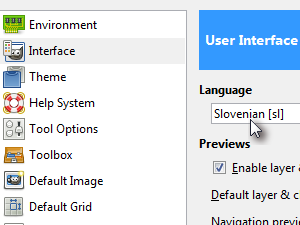 ![]() Izberite Interface ter za Language izberite možnost Slovenian. |
