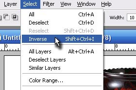 Ko boste objekt označili, kliknite zgoraj na Select in izberite Inverse.