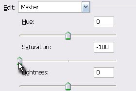 Odpre se okno za določanje barv. Saturation nastavite na -100 in kliknite na gumb OK. Slika je postala črnobela. |