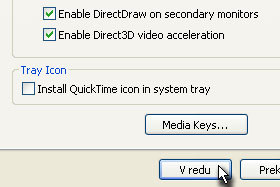 Spodaj odkljukajte Install QuickTime icon in system tray (naj bo neodkljukan) in kliknite na V redu.