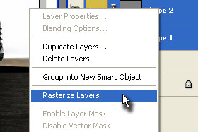 Kliknite z desnim miškinim gumbom na označena layerja in izberite Rasterize Layers.
