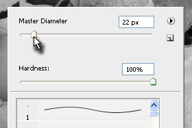 Pritisnite tipko ESC, da zaprete okno za določanje velikosti čopiča.