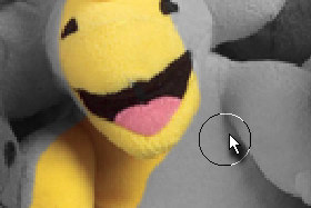 S čopičem (Brush Tool) počasi klikajte na objekt ali osebo, kateri želite povrniti barve.