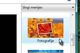 V Izdelovalec DVD-jev ste dodali fotografije, ki so se zaradi lažjega urejanje kategorizirale v Diaprojekcijo in video, ki je vsak zapis ločen.