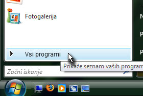 Kliknite na Vsi programi, da se prikaže seznam programov.