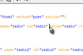 Premaknite med name="radio" in value"radio" (glej sliko)...