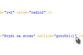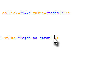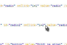 Ponovite postopek pri značkah (tag-ih), ki predstavljajo drugi gumb (glej sliko) in dopišite onClick="i=2".