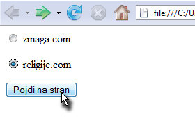 Izdelali bomo formo z dvemi radio gumbi in potem vsakemu dodali povezavo, katero bomo dosegli z posebnim gumbom.