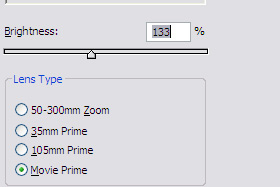 Brightness nastavite na 133%, Lens Type pa na Movie Prime