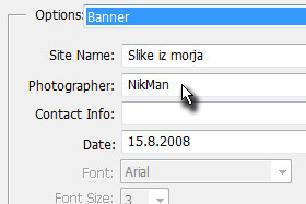 Nato pa vpišite ime galerije v polje Site Name in ime fotografa v polje Photographer. Ne zaprite še okna... |