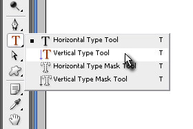 Držite z miško na orodju Horizontal Type Tool (bližnjica je tipka T) toliko časa, dokler se ne prikažejo ostala orodja in izberite Vertical Type Tool. |