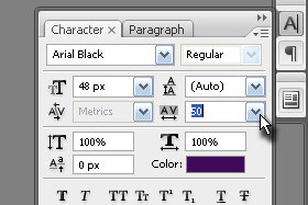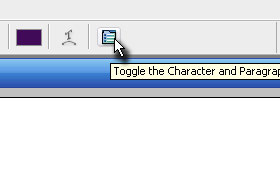 Kliknite sedaj na ikono Toggle the Character and Paragraph palletes (glej sliko).