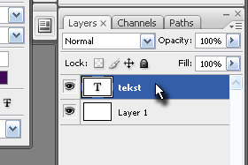 Imejte označen layer z tekstom (po vsej verjetnosti je že). Ta se vam ustvari takoj ob pisanju. |