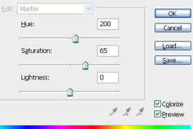 Hue nastavite na 200, Saturation 65 in Lightness 0. Kliknite na gumb OK. |