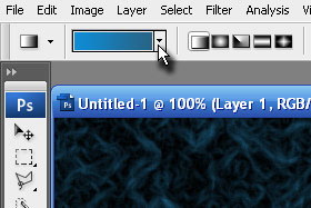 Pritisnite tipko G, da izberete orodje Gradient Tool in nato zgoraj preverite, če imate nastavljen preliv med izbranima barvama (glej sliko).