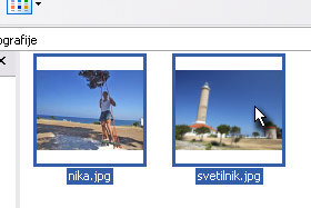 V oknu z raziskovalcem držite tipko CTRL in označite dve poljubni fotografiji.