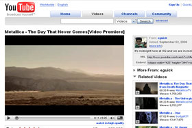 Jaz sem na najbolj priljubljenem video portalu Youtube odprl nov videospot od skupine Metallica - The day that never comes, drugače pa stran podpira več svetovno priljubljenih video strani.