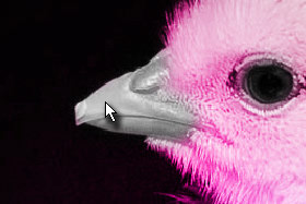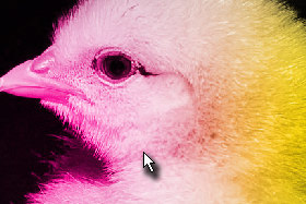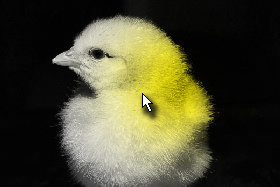 Potem pa klikajte na predele kljuna,.oči in nožic piščančka, da pobrišete nepotrebne barve. |