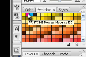 Prikaže se okno z paleto barv (glej sliko). Kliknite na malo puščico navzdol, kot jo prikazuje moja slika ter izberite PANTONE color bridge CMYK EC. Ko vas vpraša za potrdilo o zamenjavi barv, potrdite na gumb OK. |
