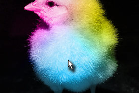Kliknite sedaj z miško na poljubno tretjino piščančka, da ga obarvate z določeno barvo (glej sliko). |