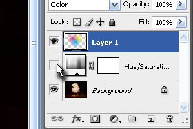 Kliknite na znak očesa pri nastavitvenemu layerju (glej sliko), da odstranite črnobelo plast.