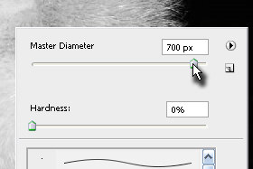 Kliknite z desnim miškinim gumbom na sliko, določite Master Diameter na 700 px in Hardness 0% (glej sliko).
