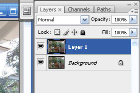 Kliknite sedaj na zavihek Layers in kliknite na duplcirani layer (glej sliko).
