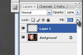 Potem pa določite layerju Fill na 50% (glej sliko). |