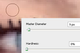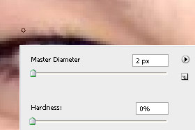Kliknite z desnim miškinim gumbom na dokument in določite majhen Master Diameter (velikost čopiča) in Hardness 0% (glej sliko).