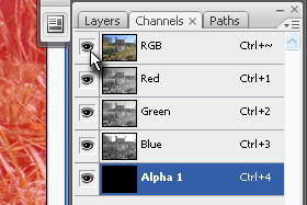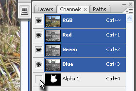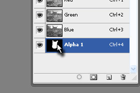 Držite tipko CTRL in kliknite na preogledno sličico pri kanalu Alpha 1 (glej sliko).