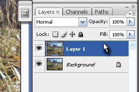 Kliknite na zavihek Layers in označite Layer 1 (glej sliko).