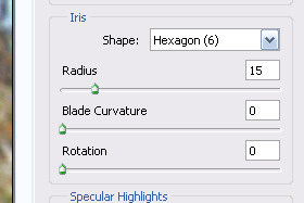 Shape določite Hexagon (6), Radius 15, Blade Curvature 0 in Rotation 0.