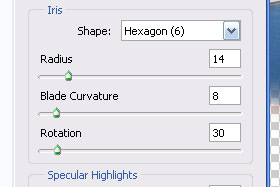 ![]() Shape določite Hexagon (6), Radius 14, blade Curvature 8 in Rotation 30. |