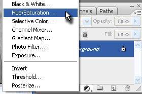 Kliknite zgoraj na Layer, New Adjustment Layer in izberite Hue/Saturation...