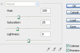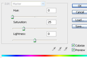 Saturation pustite 25, Hue pa nastavljate kakor želite in potrdite na gumb OK. Jaz sem Hue pustil 25. |